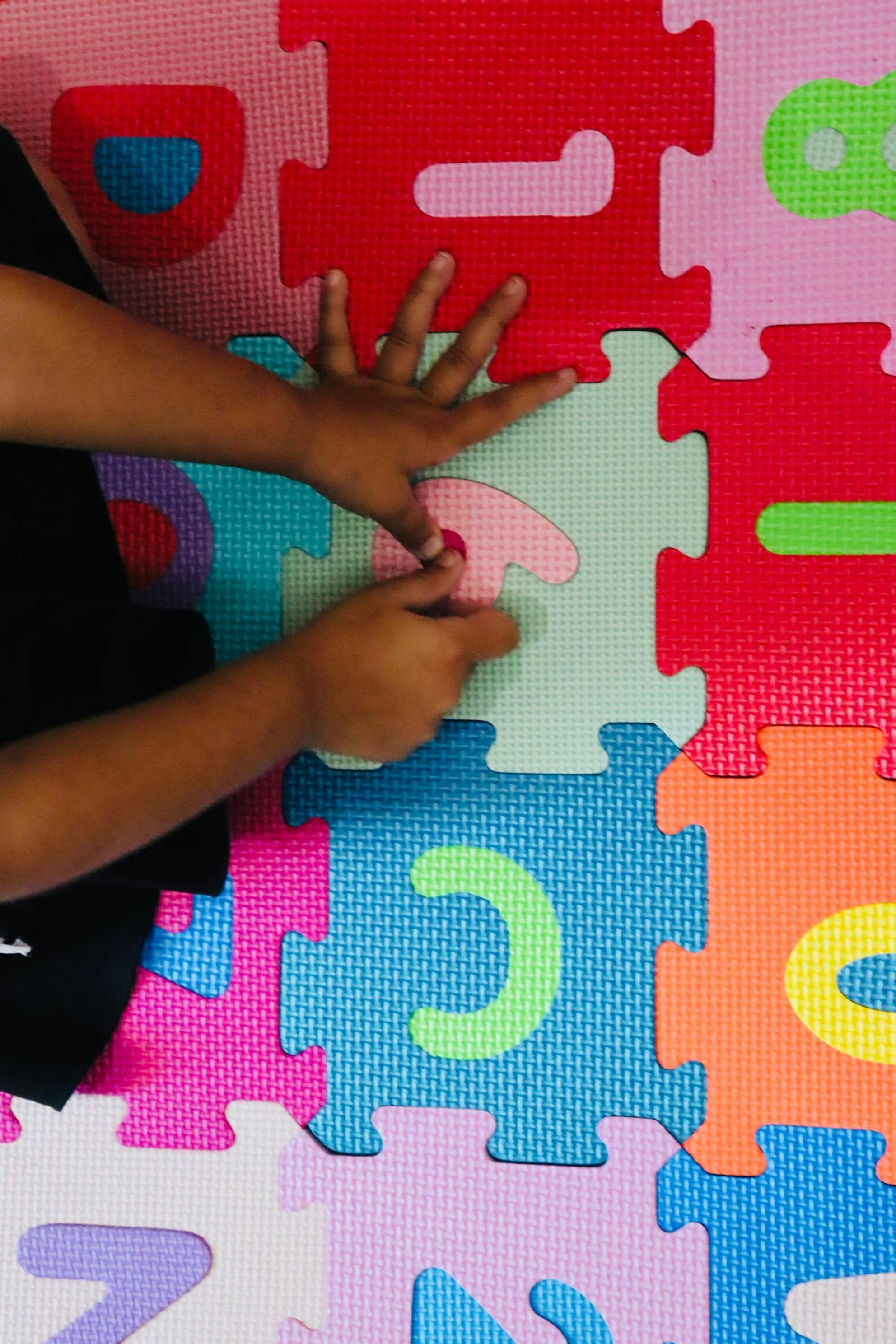Puzzle Mat Play: Lay the blocks flat to form a colorful play mat that provides a cushioned surface for kids to play on.