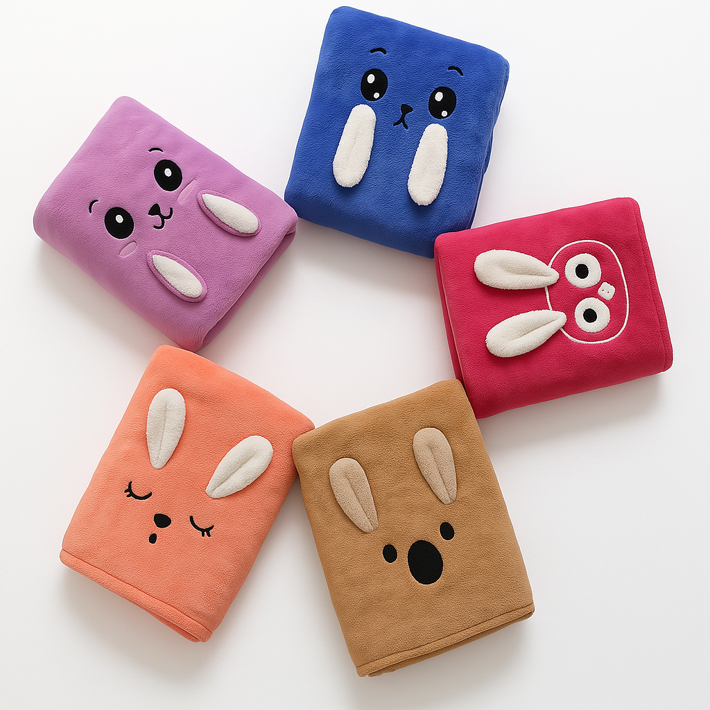 Choose from a range of charming designs in gentle, eye-pleasing colors like blush pink, baby blue, soft tan, lilac, and sunshine yellow. Each towel becomes a part of your child’s little world — a beloved companion that adds magic to everyday routines.